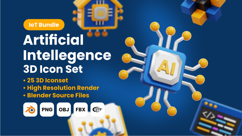 Collection for 25 Artificial Intellegence Crisis 3D icons. Comes with Blender files and PNG files rendered in 3000x3000 pixel