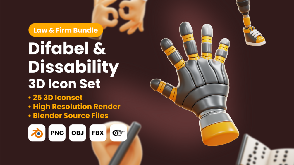 Collection for 25 Difabel & Disability 3D icons. Comes with Blender files and PNG files rendered in 3000x3000 pixel