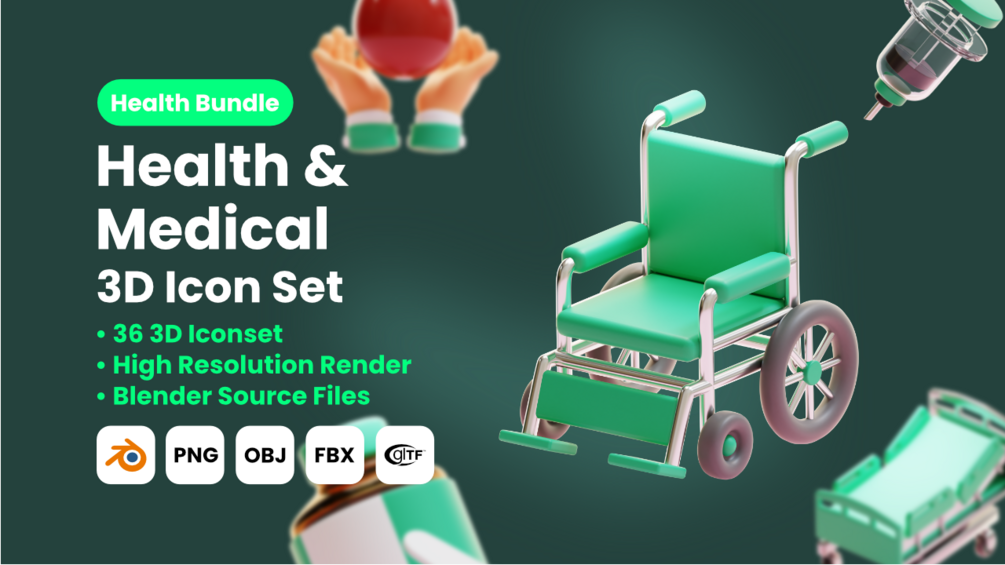 Collection for 36 Healthcare & Medical 3D icons. Comes with Blender files and PNG files rendered in 3000x3000 pixel